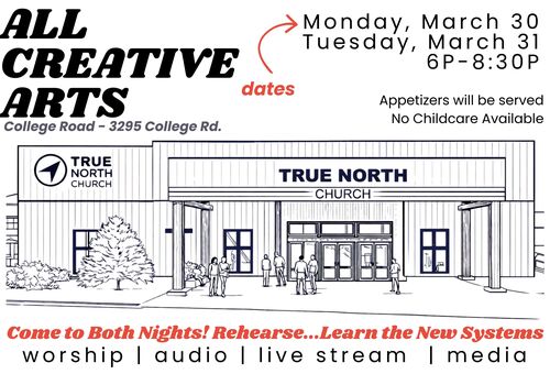 Originally, I had planned to split the Creative Arts Team in half so you would only need to attend one night. However, the sound company we’re partnering with, Sweetwater, has asked if as many of you as possible could attend both nights. So, I’d love for you to join us for both if you’re able.